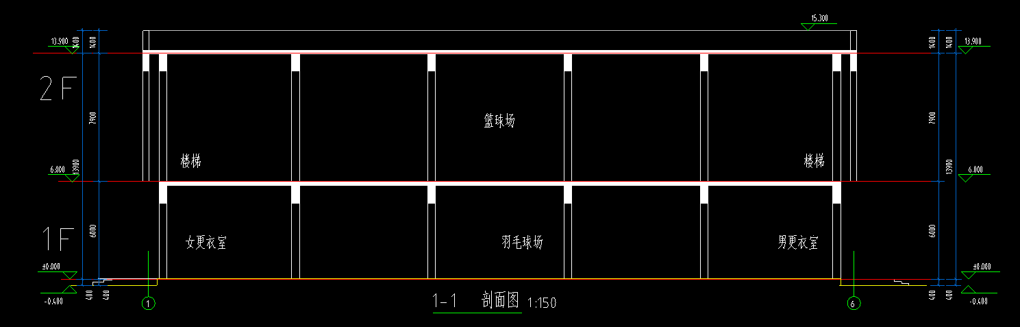 2层1533平-某私立中学风雨操场